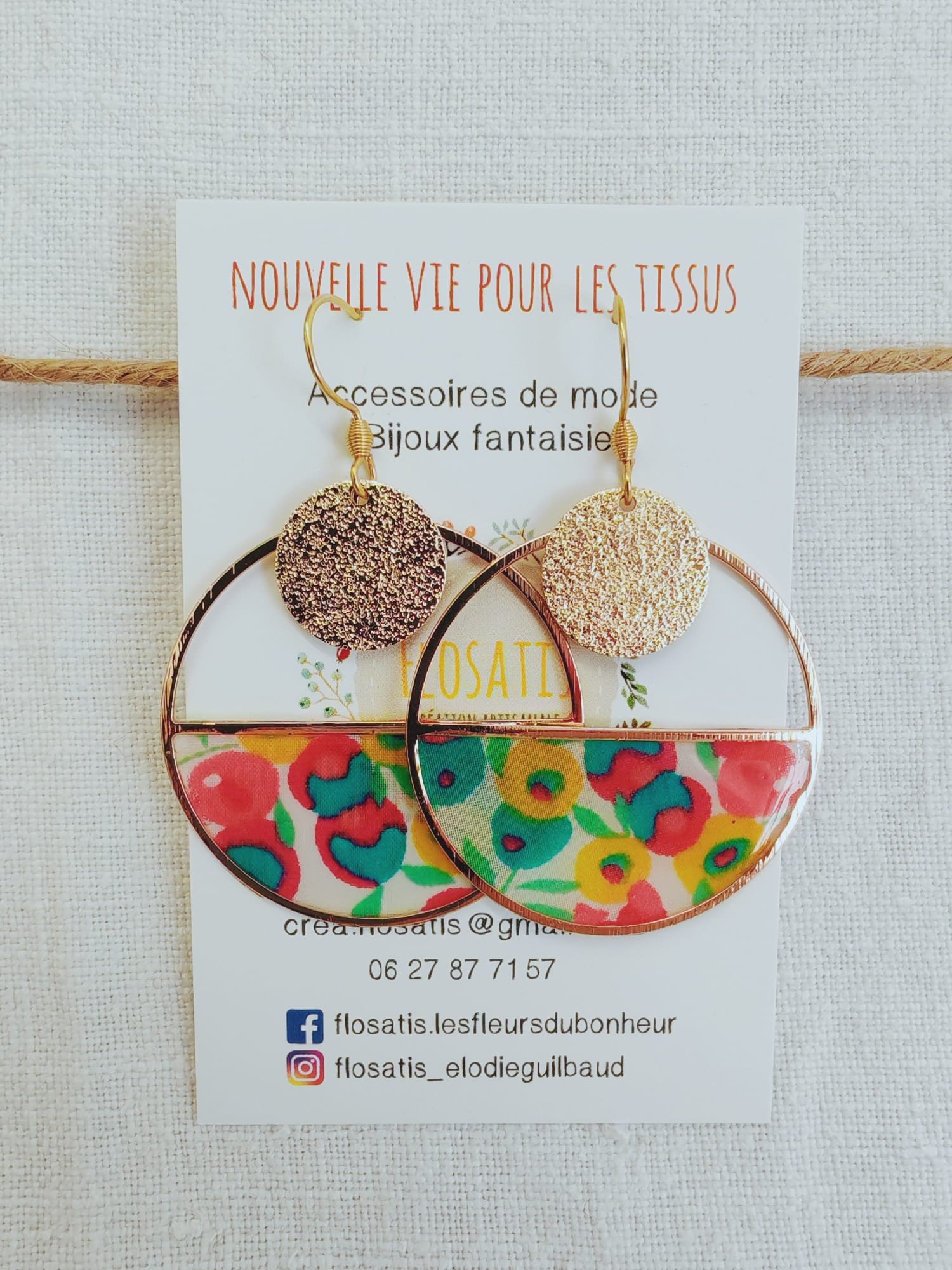 Cette paire de boucles est réalisée à partir de micro chutes de tissu Liberty Fabric récoltées auprès de partenaires couturières.
