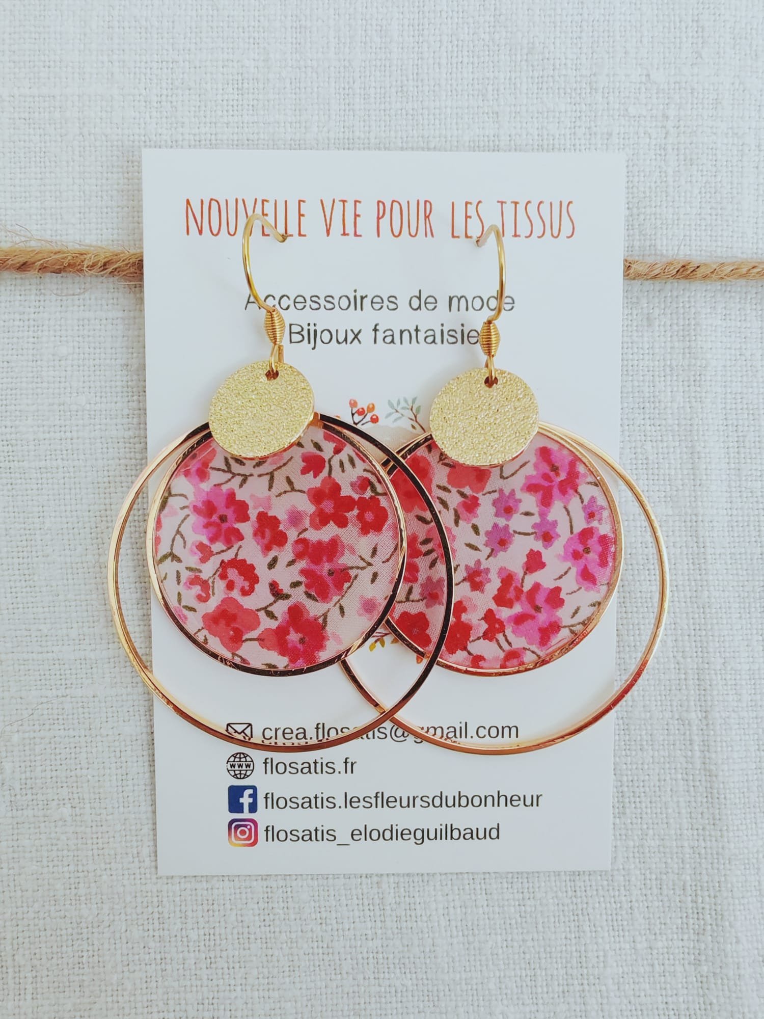 Cette paire de boucles est réalisée à partir de micro chutes de tissu Liberty Fabric récoltées auprès de partenaires couturières.